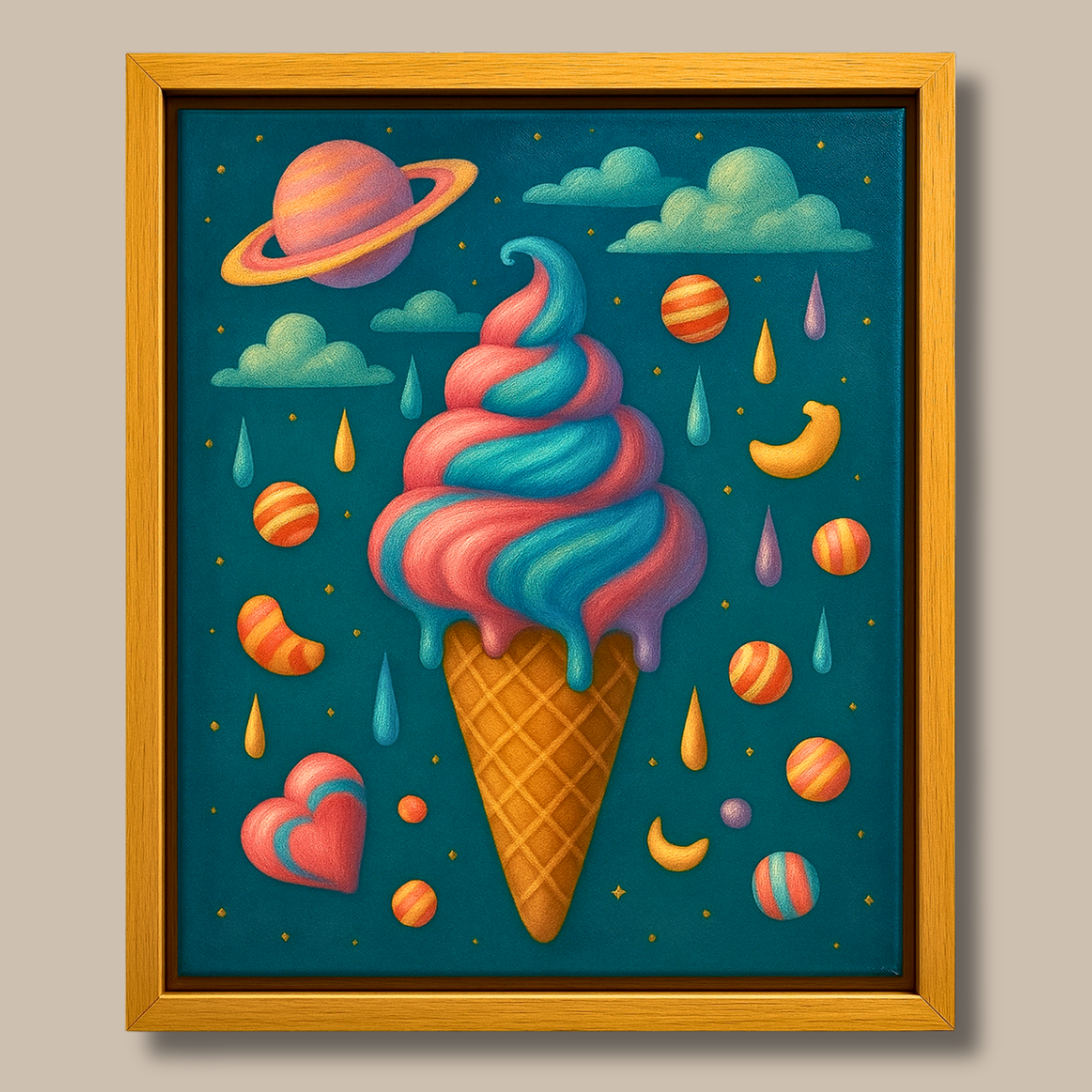 A dreamy collection of planetary scoops floating through the galaxy. Sweetness beyond the stars.